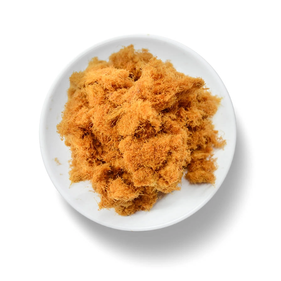 江記華隆豬肉鬆無添加豆粉,以新鮮豬肉為原料,不添加防腐劑及人工色素,輔以食用油,將其烘炒為金黃色,酥酥口感,是大小朋友的最愛。