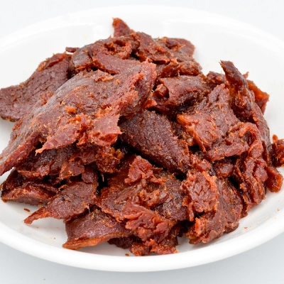 成分:牛肉、糖、鹽、醬油。 添加物:L-麩酸鈉、己二烯酸(千分 之二以下)、辣椒粉、香料。