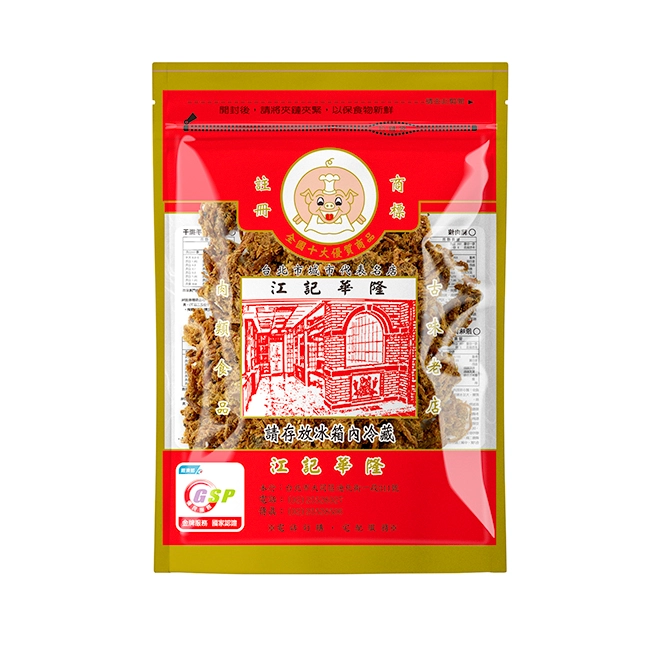成分:豬肉、醬油、香料、糖、鹽、 黑胡椒粒。 添加物:L-苓酸鈉、異抗壞血酸鈉 (抗氧化劑)0.2%以下、天門冬酸鈉、 己二烯酸鉀(千分之二以下)、胺基乙 酸、琥珀酸二鈉、DL-胺基丙酸、5'鳥嘌呤核苷磷酸二鈉、5'-次黃嘌呤 核苷磷酸二鈉。
