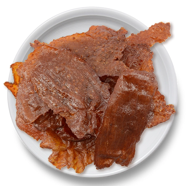 江記華隆原味豬肉紙較有嚼勁自釀古早味豆油發酵180天以上,再經過曝曬存放後使用於豬肉乾中,軟嫩Q有勁,肉汁的香甜越吃越刷嘴。
