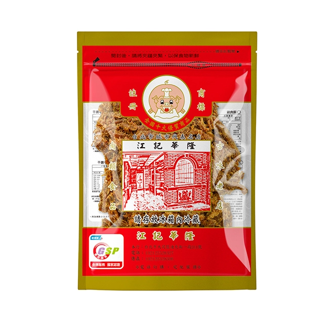 成分:豬肉、醬油、香料、糖、鹽。 添加物:L-藝酸鈉、異抗壞血酸鈉 (抗氧化劑)0.2%以下、天門冬酸鈉、 己二烯酸鉀(千分之二以下)、胺基乙 酸、琥珀酸二鈉、DL-胺基丙酸、5'鳥嘌呤核苷磷酸二鈉、5'-次黃嘌呤 核苷磷酸二鈉。保存期限:30天