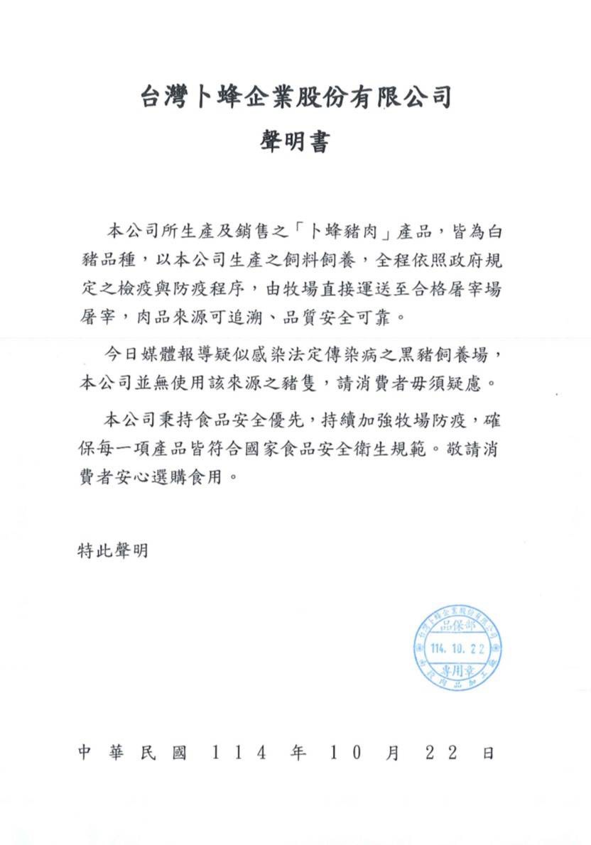 豬肉生肉肉品使用聲明