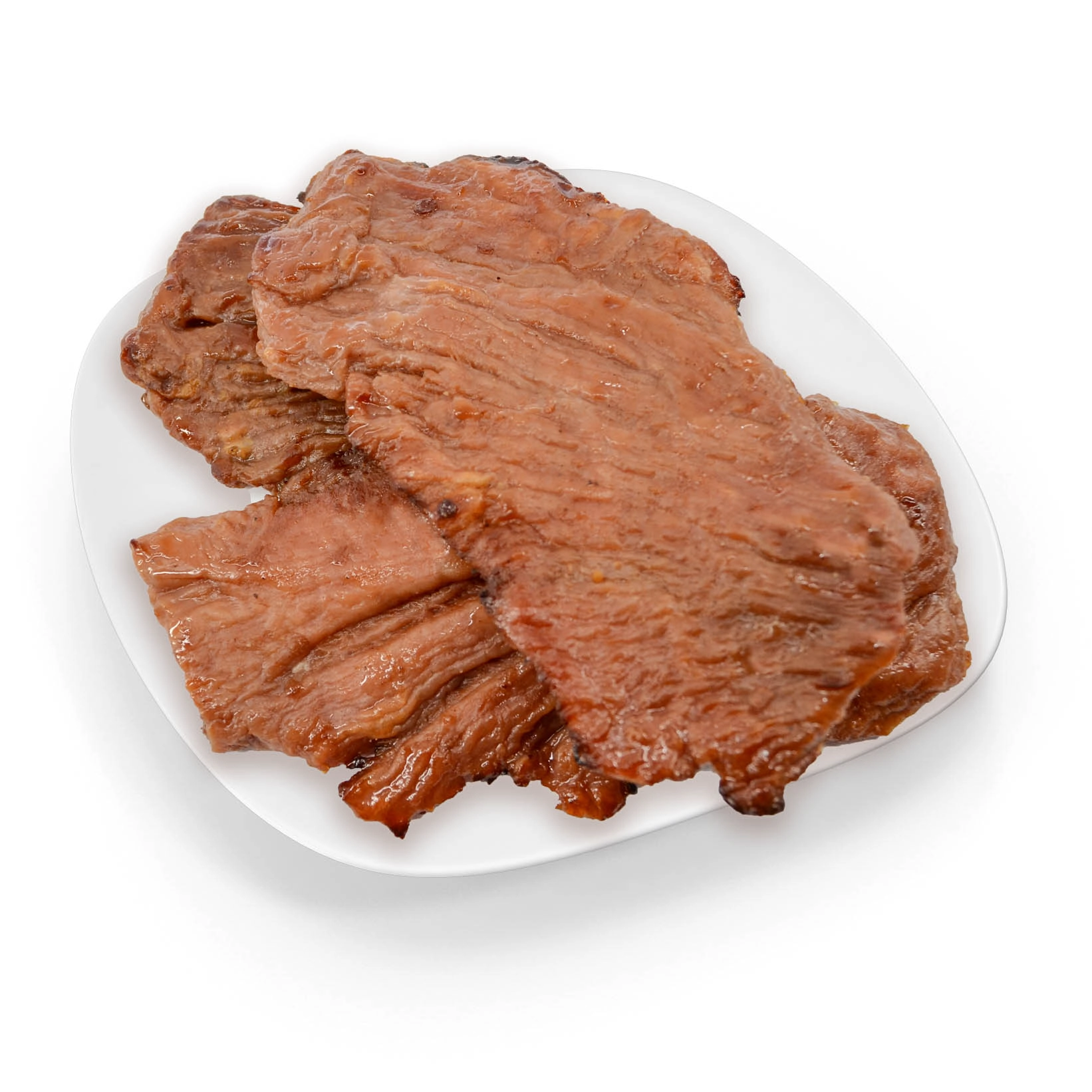 成分:豬小里肌肉、醬油、肉桂粉、 蔗糖、大豆水解蛋白、葡萄糖、棕櫚 油 。 添加物:D-山梨醇液(甜味劑)、己二 烯酸鉀(千分之二以下)、檸檬酸鈉、 多磷酸鈉、甘草萃(甜味劑)、醋磺內酯鉀(甜味劑異抗壞血酸鈉(抗氧化劑)、 亞硝酸鈉、香料、菸鹼醯胺、氨基乙酸 、DL-胺基丙酸、L-天門冬酸鈉、5'-鳥 嘌呤核苷磷酸二鈉、5'-次黃嘌呤核苷 磷酸二鈉、琥珀酸二鈉、食用色素紅 色7號、中鏈三酸甘油酯、維生素E。
