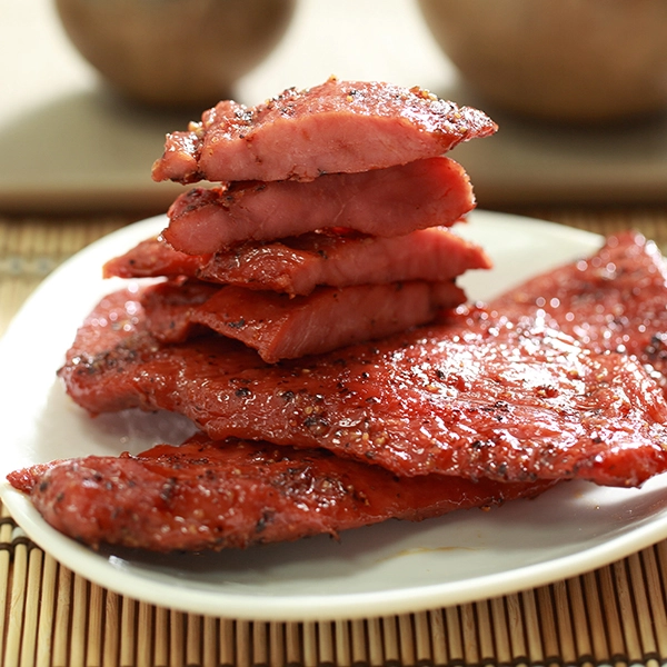 成分:豬小里肌肉、醬油、肉桂粉、 蔗糖、大豆水解蛋白、葡萄糖、棕櫚 油、黑胡椒粒。 添加物:D-山梨醇液(甜味劑)、己二 烯酸鉀(千分之二以下)、檸檬酸鈉、 多磷酸鈉、甘草萃(甜味劑)、醋磺內 酯鉀(甜味劑異抗壞血酸鈉(抗氧化劑)、 亞硝酸鈉、香料、菸鹼醯胺、氨基乙酸 、DL-胺基丙酸、L-天門冬酸鈉、5'-鳥 嘌呤核苷磷酸二鈉、5'-次黃嘌呤核苷 磷酸二鈉、琥珀酸二鈉、食用色素紅 色7號、中鏈三酸甘油酯、維生素E。